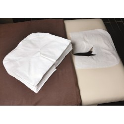 Pour vos tables de massage, nous vous proposons nos Têtières jetables, têtière à usage unique en tissu non tissé avec trou en X ou en Y.